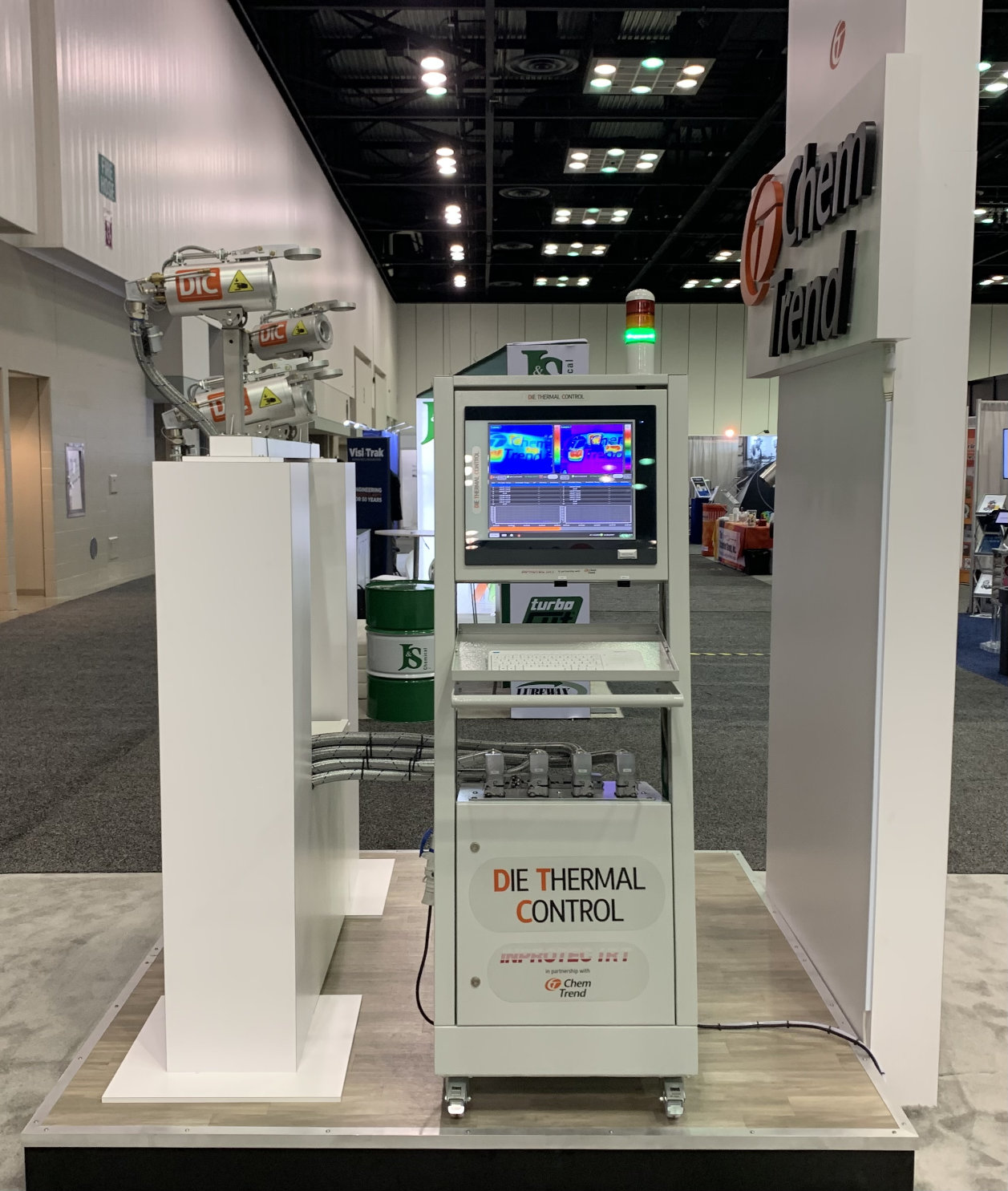 We thank the visitors who came to the Chem-Trend stand at exhibition NADCA 2021 (USA) and were able to see the new DTC 4H running, the modular thermographic system that allows the connection from 1 to 4 thermal cameras so as to be able to shoot even moulds that due to their depth of the figure do not allow the complete thermographic shooting using only 2 thermal cameras.